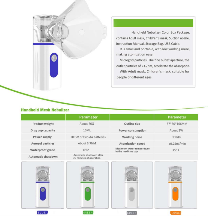 It is ideal for children who are usually scared by the noise made by other devices but also for those who want an aerosol device ready for use at any time at home, at the office or on vacation. Due to its small size, the device is extremely easy to use by people who need several aerosol sessions per day or by people who travel frequently.